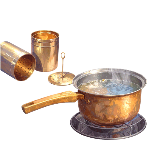 Start by heating the water in a saucepan. In the meanwhile, make sure the filter is clean and dry, setting the base and top portions in place
